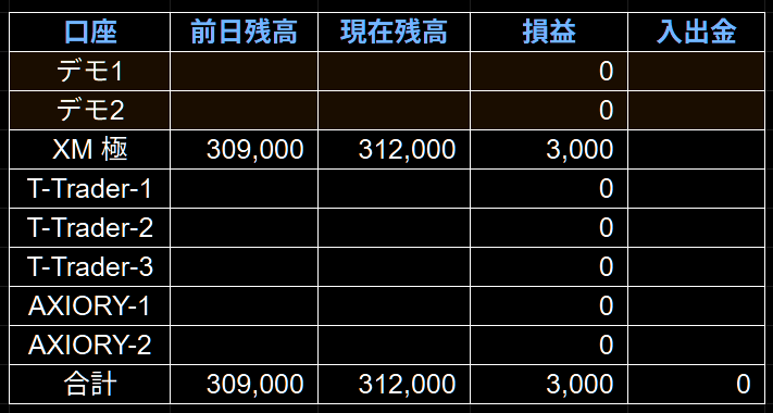 今日もEA(ナンピンメイカー)の利益報告だ。本日の利益は3,000円だぜ!