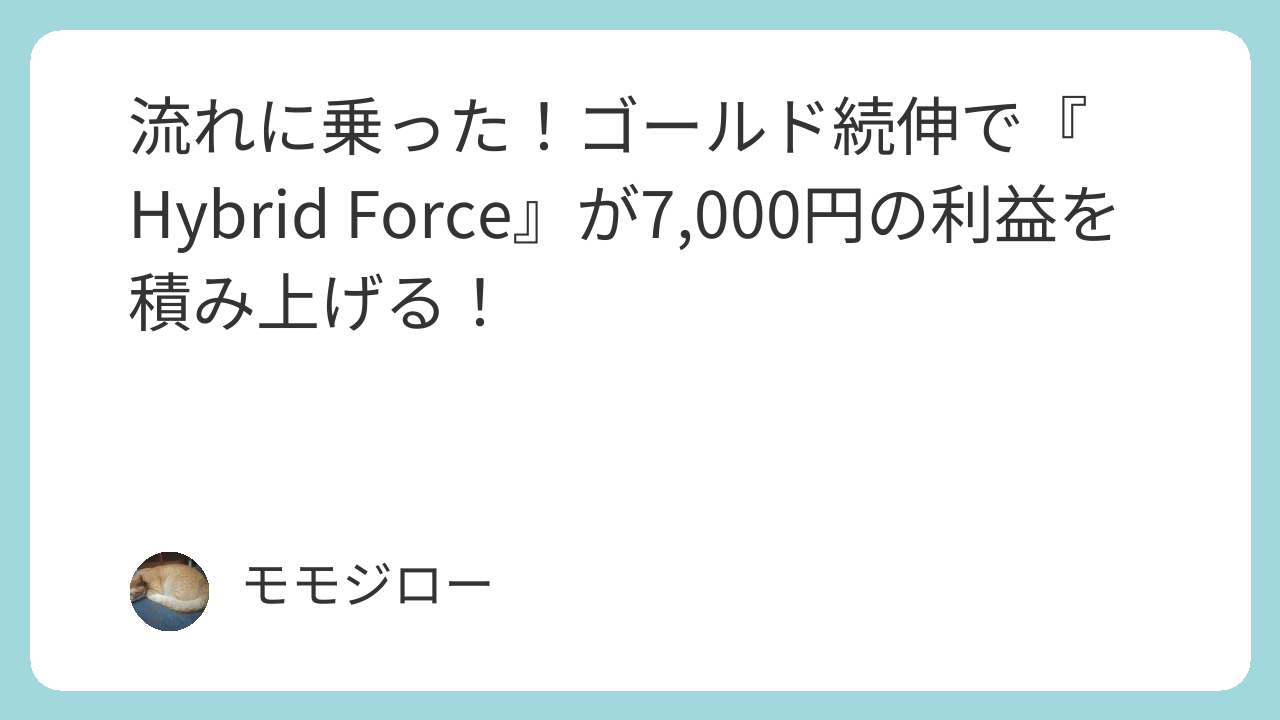 一昨日、ゴールドがレンジを力強くブレイクし、『Hybrid Force』が14,000円の利益を叩き出してくれたと報告したばかりだが、その勢いは止まらねぇぜ!