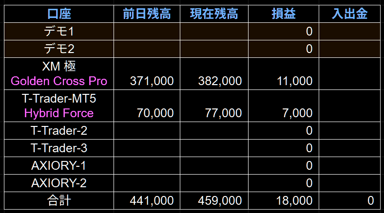 - 短期のトレンドを感知: 一瞬の反発や上昇の波を**『Golden Cross Pro』と『Hybrid Force』**のロジックが確実に感知し、迷わず利益を確定した。