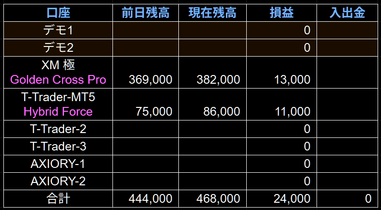 - 損失は最小限に: 万が一、急激な円高でEAが損切りを食らっても、今日の24,000円の利益があるから耐えられる。確定利益は最強の防御だ!