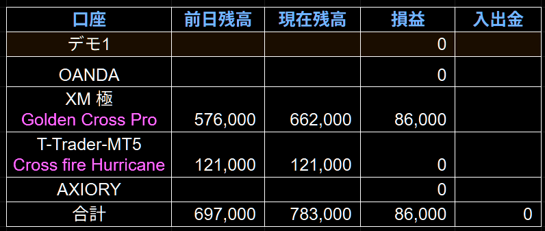 今回の爆益で、口座残高は再び強固なものになった。 『Crossfire Hurricane』のセッティング見直しも、この「悔しさ」をバネに、よりアグレッシブかつ精密なものに仕上げるつもりだ。